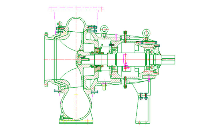 3、軸向可調節(jié)結構設計,使葉輪方便調節(jié),保持葉輪與前泵蓋和耐磨板的間隙,從而保持泵的高效率。